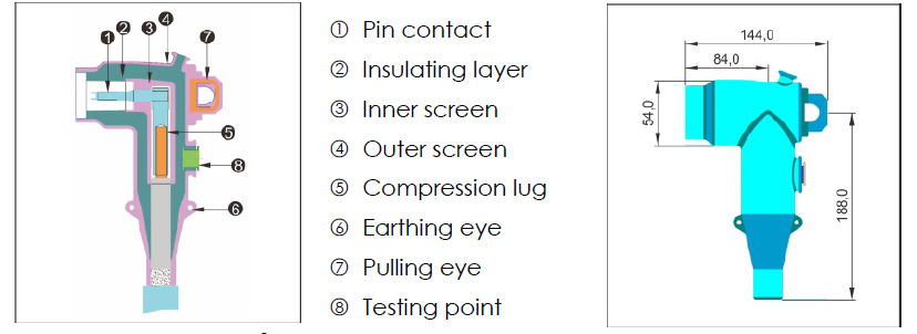 - Applications: BH-EC 250A screened elbow connector, made of EPDM rubber, is used for indoor Applications. The main body is composed of inner conductive layer, insulating layer and outer conductive layer, suitable for the connection of XLPE cables up to 12/20kV to transformers, switchgear, motors and other equipment with a separable connector.