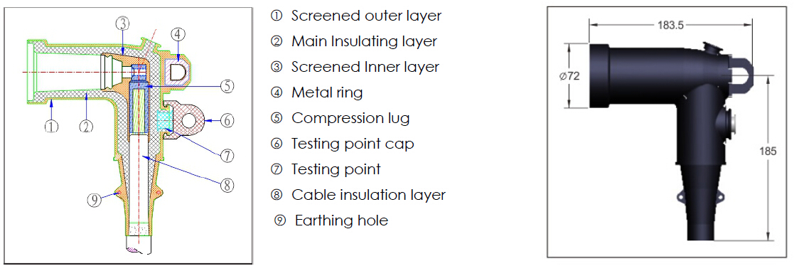- Applications: BH-ECPT 15kV Elbow type PT connector is applied for the supply of power/metering Control for the electric operation system of transformer EHV tower. with the function of complete insulation, sealing and screened, the suitable range of cable is 35~120mm2.