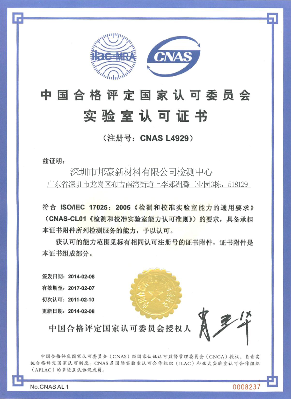 深圳市邦豪新材料有限公司品质保证系统严格按照ISO9001:2008体系的要求建立并通过认证。公司大部分产品通过了RoHS、REACH认证,部分产品获得了UL认证。我们仅上传了部分产品认证及体系认证,如果您需要其它认证,请与我们联系。 深圳市邦豪新材料有限公司品质保证系统严格按照ISO9001:2008体系的要求建立并通过认证。公司大部分产品通过了RoHS、REACH认证,部分产品获得了UL认证。我们仅上传了部分产品认证及体系认证,如果您需要其它认证,请与我们联系。
