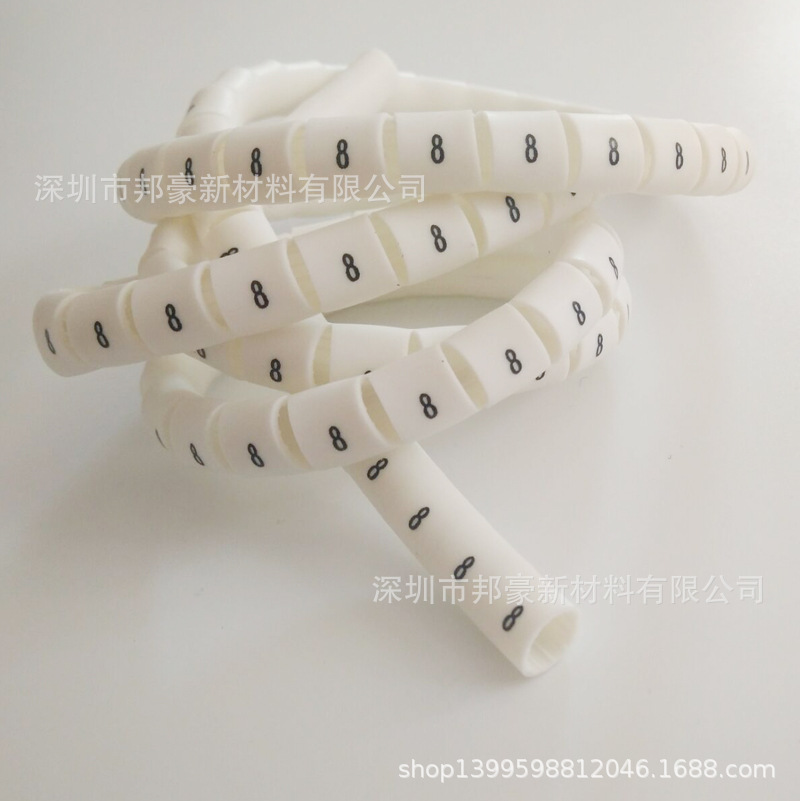常用的是白色PVC号码管,形状为管内带内齿圆套管,常用规格为0.75、1.0、1.5、2.5、4.0、6.0平方毫米,其规格与电线规格相匹配,如1.5平方电线应选用1.5平方号码管