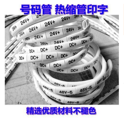 热缩号码管由聚烯烃材料制成,其材质具有阻燃,收缩温度低、柔软及优异的抗机械强度、产品印字耐擦、耐磨性能优异等特点。印字内容由文字、字母、符号、图形、颜色等组成,用于标出不同的线缆,以保证电线电缆正确连接、安装和安全运行,以及维修保养的方便。其广泛应用于电子、电器、电力、电源、通信通讯、航空航天、机车、网络布线等领域。